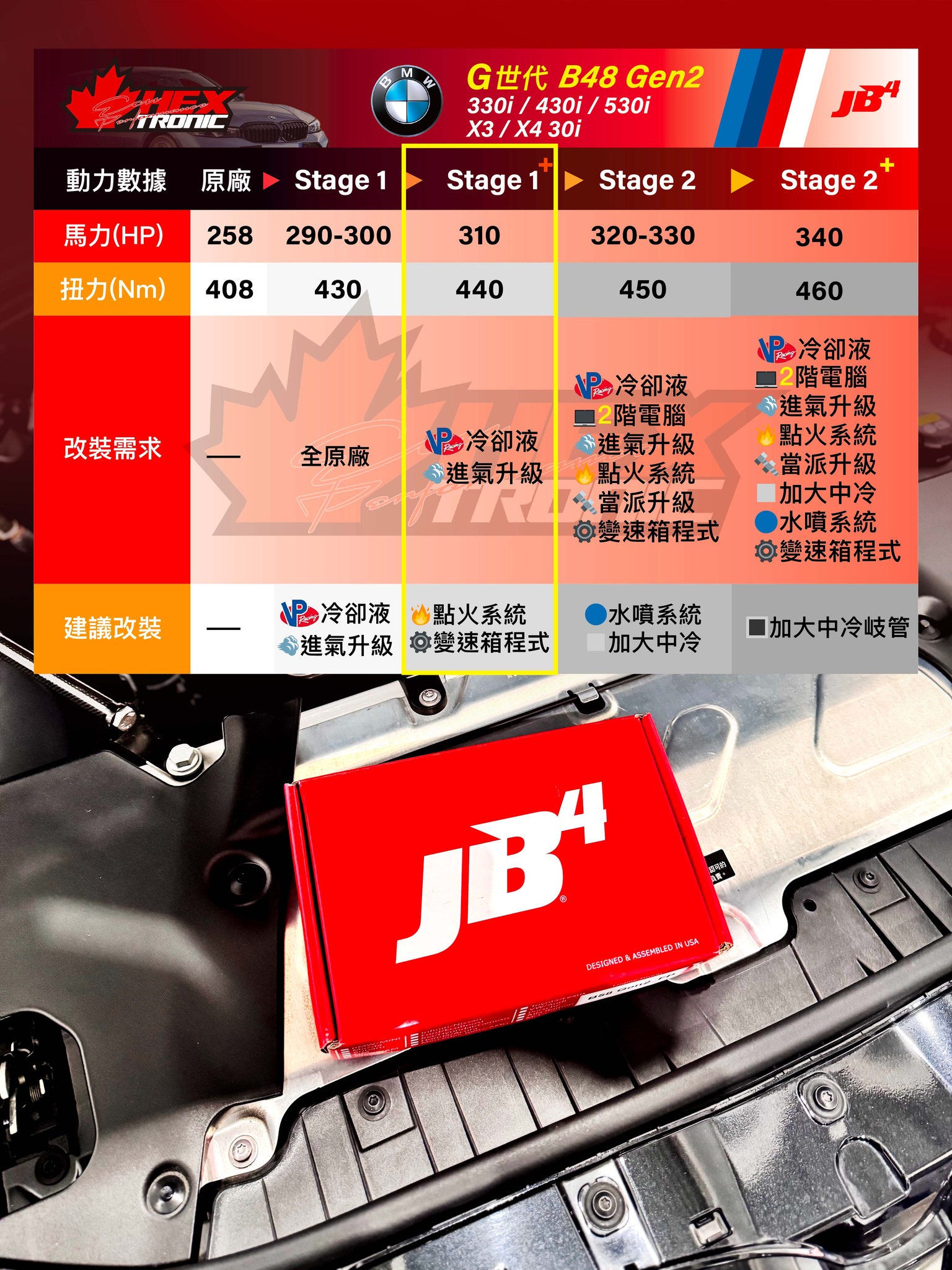 BMW, JB4引擎電腦, XHP, 馬力提升2022 BMW X3 30i|JB4 + XHP 雙升級最有感2025-11-27 發佈由 管理員 27 11 月 這次的 X3 30i 不只是做 Stage1+ 而已,重點在於:『JB4 + XHP 三階 一起上,效果直接翻倍!』 加速實測 #Dragy 原車:7.18 秒 JB4 + XHP + Stage1+ 完整套裝:6.45 秒 為什麼這組合特別強?原廠變速箱程式偏保守,即使 JB4 推力變大了,但換檔邏輯會限制輸出。導入XHP 後:檔位更願意保轉,減少不必要升檔,加速全程更完整。JB4 的潛力被完全打開! 本次升級清單 JB4 Stage 1+ XHP TCU三階 VP冷卻液 MST進氣 Dinan考爾 NGK火星塞 駕駛感受升級後的 X3 30i不只是變快,而是「變得更聽話、更順暢、更聰明」。 油門一下,車輛反應即時,渦輪與變速箱完全同步。#BMW #BMWX3 #X330i #B48 #JB4 #XHP #Stage1Plus #BMW升級 #變速箱優化 #動力優化 #性能升級 #渦輪增壓 #Dragy #黑創優化 #CarMods #性能休旅分享至: